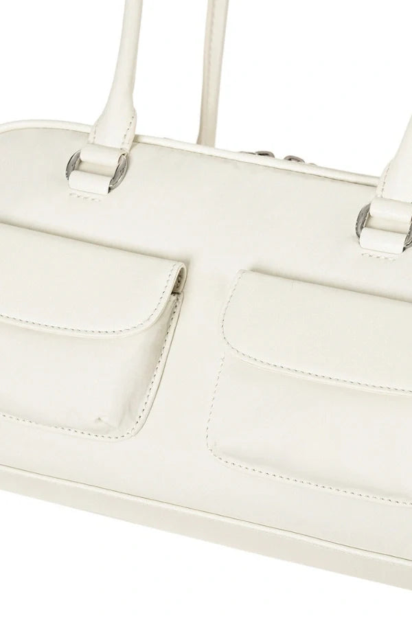 Introducing the nylon-combination edition of the iconic 'Karina Chubby Bag.' a playful nod to retro bowling bag designs with its soft. rounded silhouette and timeless charm.