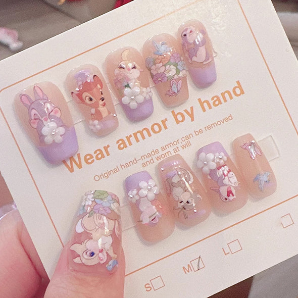 Handmade painted dog and character blessings. kawaii acrylic squoval nail with 3d cherry & heart. You can match your nails&ootd whenver or wherever you like
