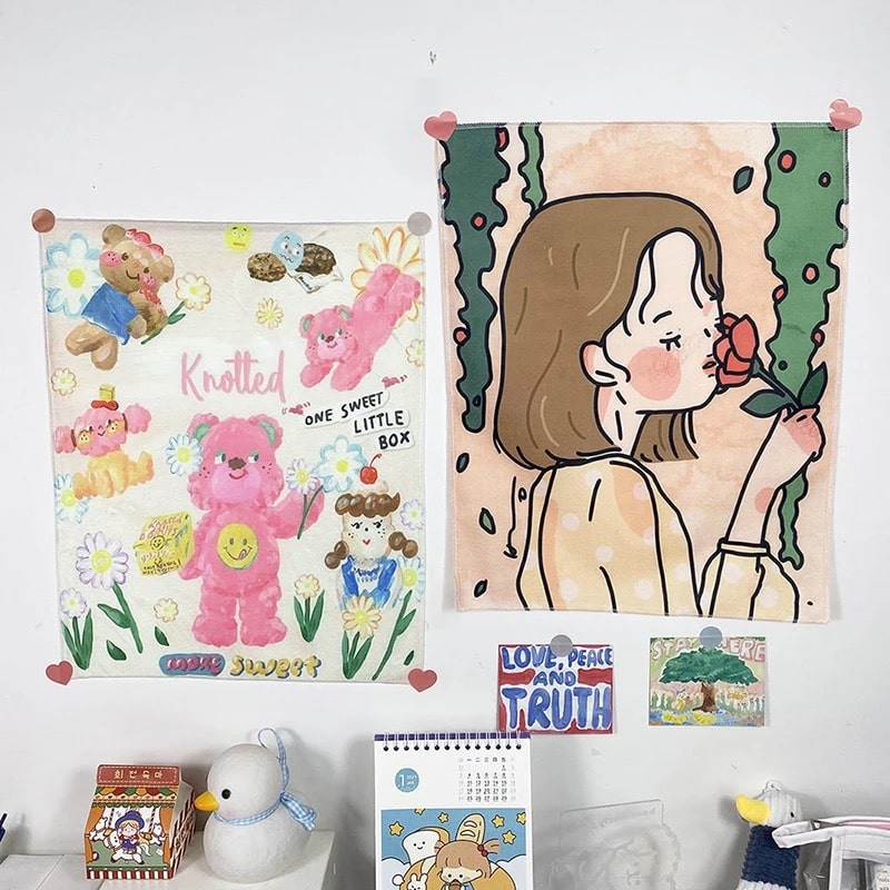 Elevate your space with the Korean Oil Painting Tapestry Wall Hanging �a beautiful blend of aesthetic decor and kawaii charm that's perfect for creating a cozy. stylish room. Featuring a soft. detailed oil painting style. this tapestry is ideal for ins girl room decor. adding character and a unique focal point to any wall. Use it as a background for photos. a cute room accent. or a cozy wall blanket to bring warmth and personality to your space.