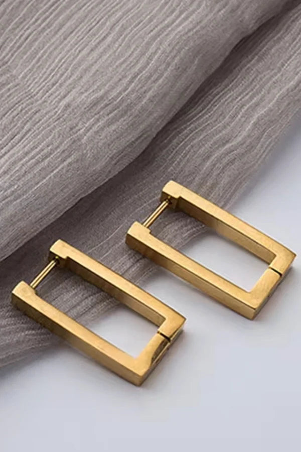 Discover the refined simplicity of our Lilou Rectangular Hoop Earrings. These meticulously crafted earrings feature a sleek rectangular design. adding a touch of modern sophistication to any ensemble. The lightweight construction ensures comfortable wear. while the secure clasp provides peace of mind. Whether you're dressing up for a special occasion or adding a subtle accent to your everyday look. these hoops are the perfect choice. Presented in a sleek gift box. they also make a thoughtful present for a loved one.