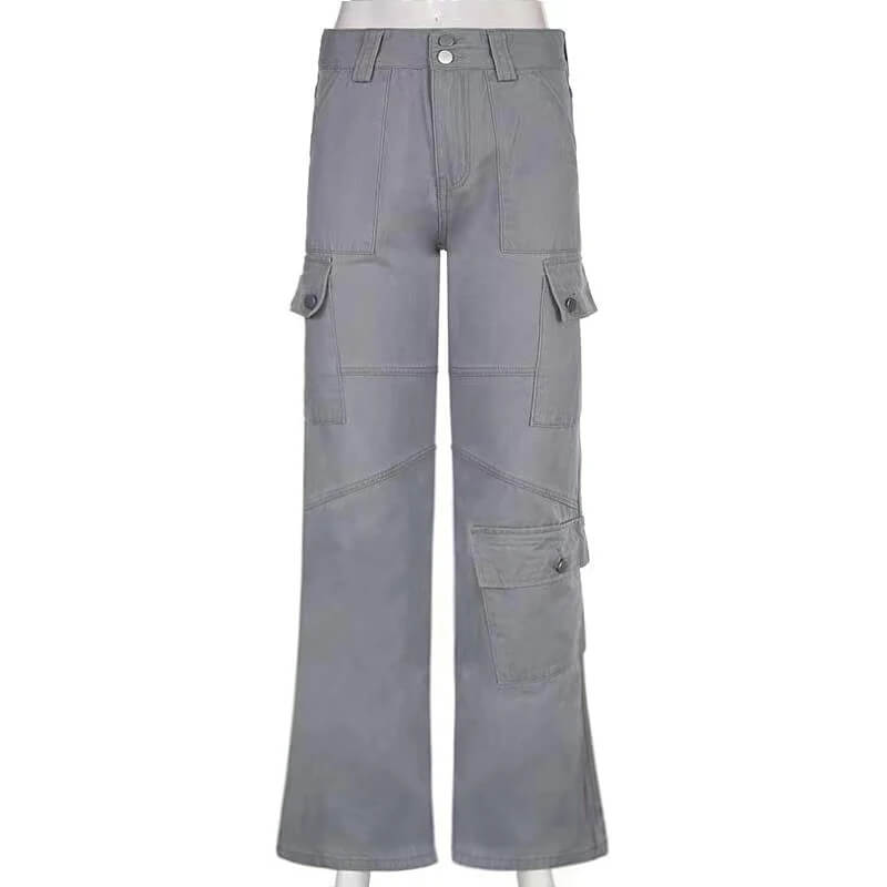 These cool girl-style pants feature cargo pockets and buttons and are made from premium fabric for comfortable all-day wear.