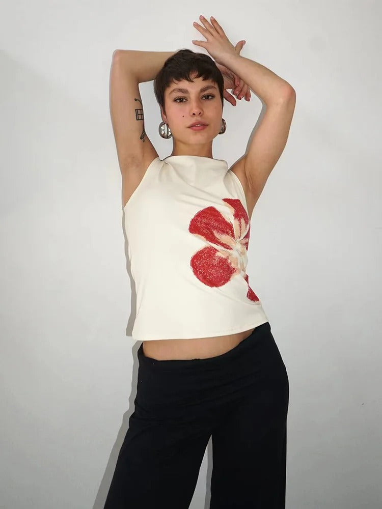 Step into effortless cool with the Tropic Rush Tank Top—a piece that feels like summer. even in the off-season. With its sleek. sculpted silhouette and bold painterly flower splash. this top brings both vintage attitude and minimalist edge.
