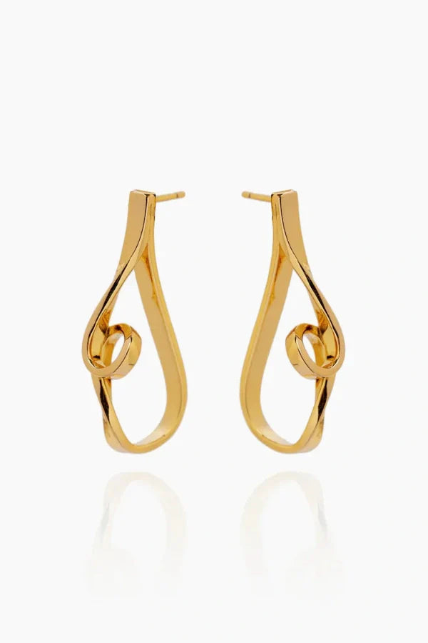 Introducing the Melissa Gold Studs. a captivating statement piece designed to elevate any look. Measuring 35mm. these earrings feature an intricate molten-metal-inspired design. exuding boldness and sophistication. Crafted from thick 14K gold plating over brass and hypoallergenic for comfortable wear. the Melissa Gold Studs strike the perfect balance between standout style and everyday versatility. Add a touch of modern elegance to your jewelry collection with this unique design.