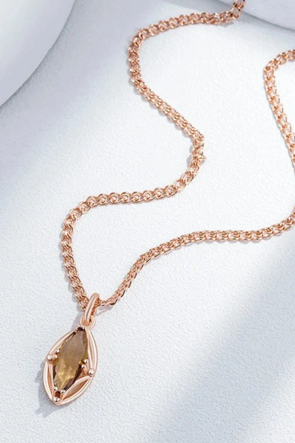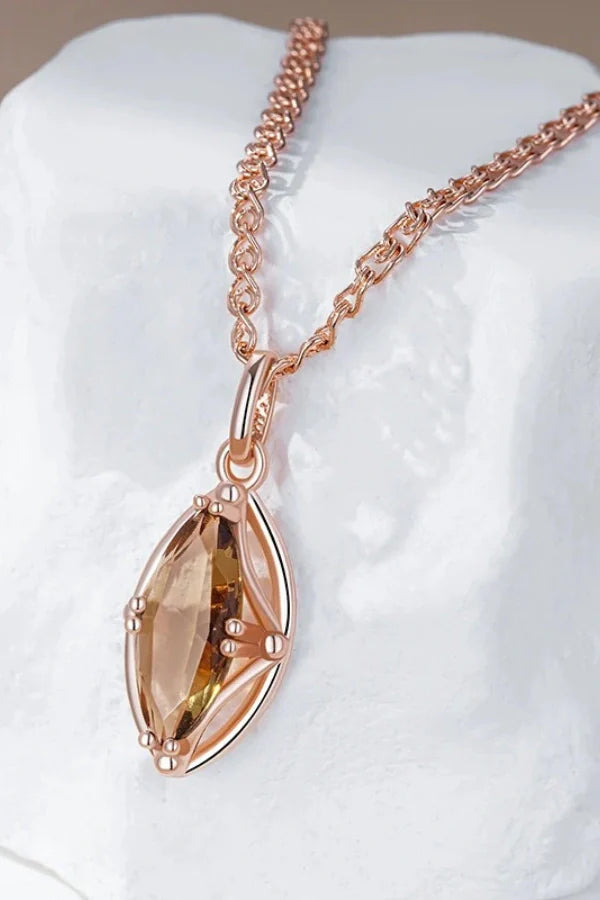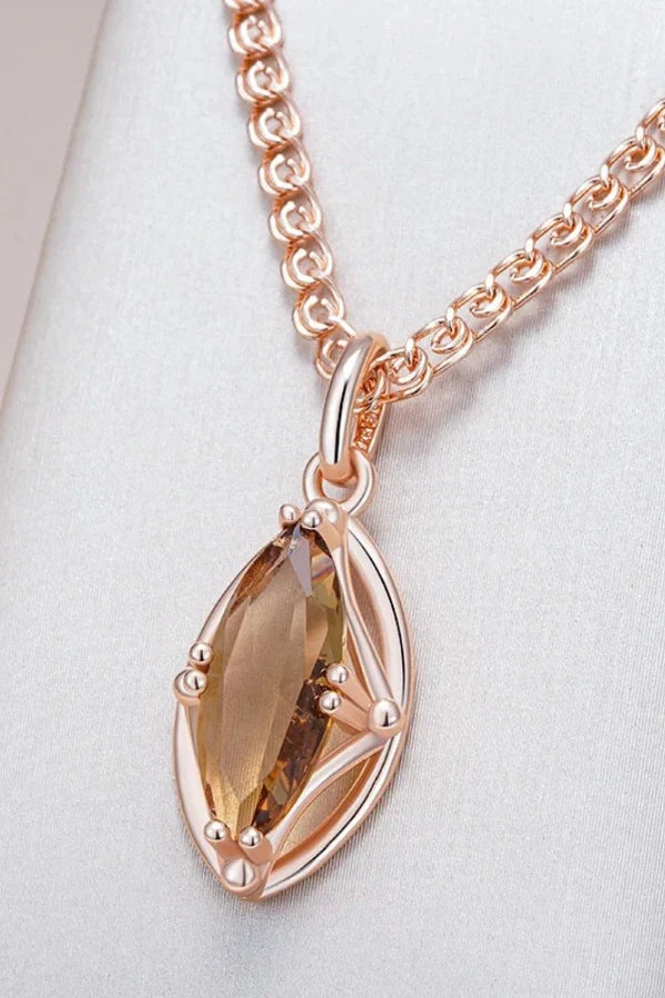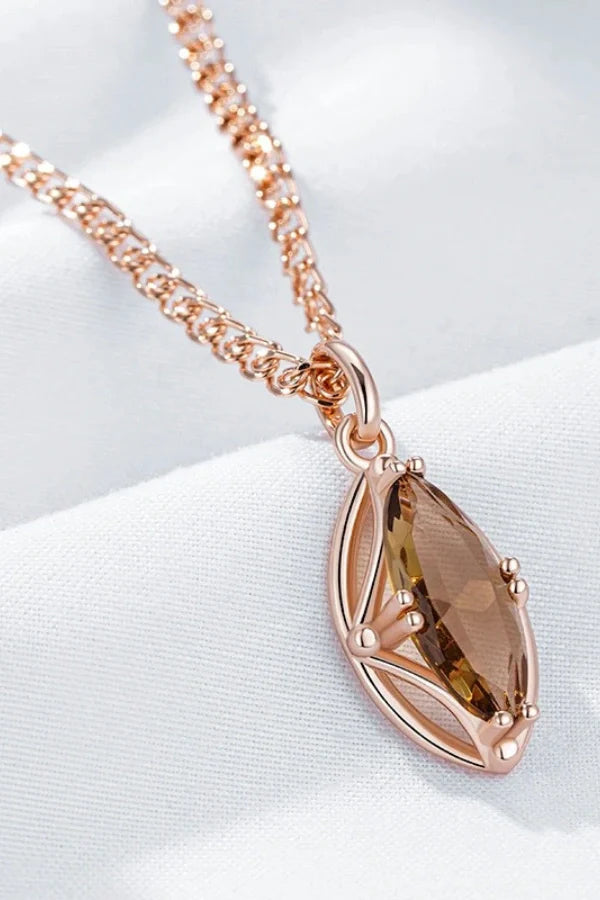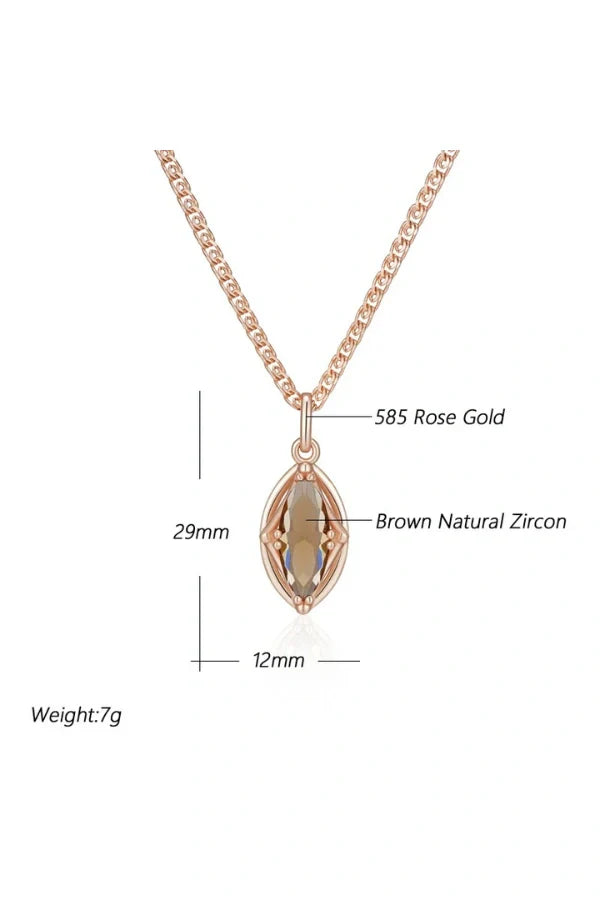 The Mireille Brown Natural Zircon Pendant Necklace is a luxurious and elegant accessory. perfect for adding a touch of sophistication to any outfit. Crafted in a stunning 585 rose gold color. this high-quality necklace features a dazzling natural brown zircon stone. exuding warmth and timeless beauty. Designed for brides. weddings. and formal occasions. it complements any look with its radiant charm and exquisite craftsmanship.