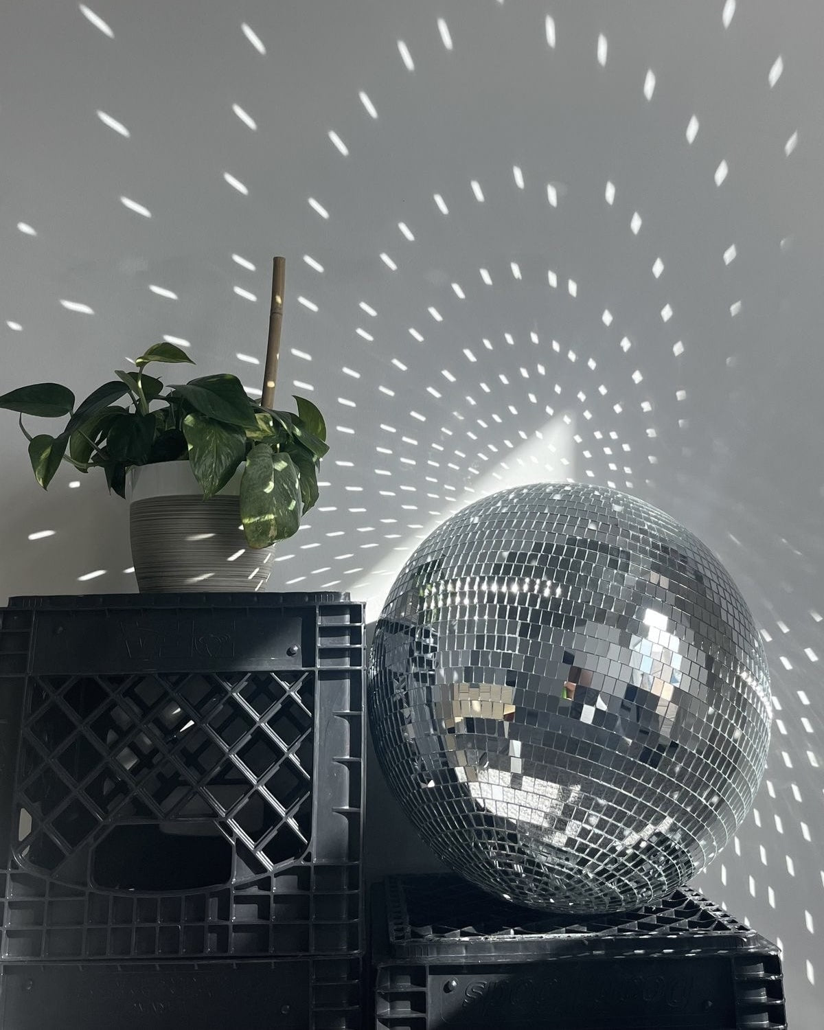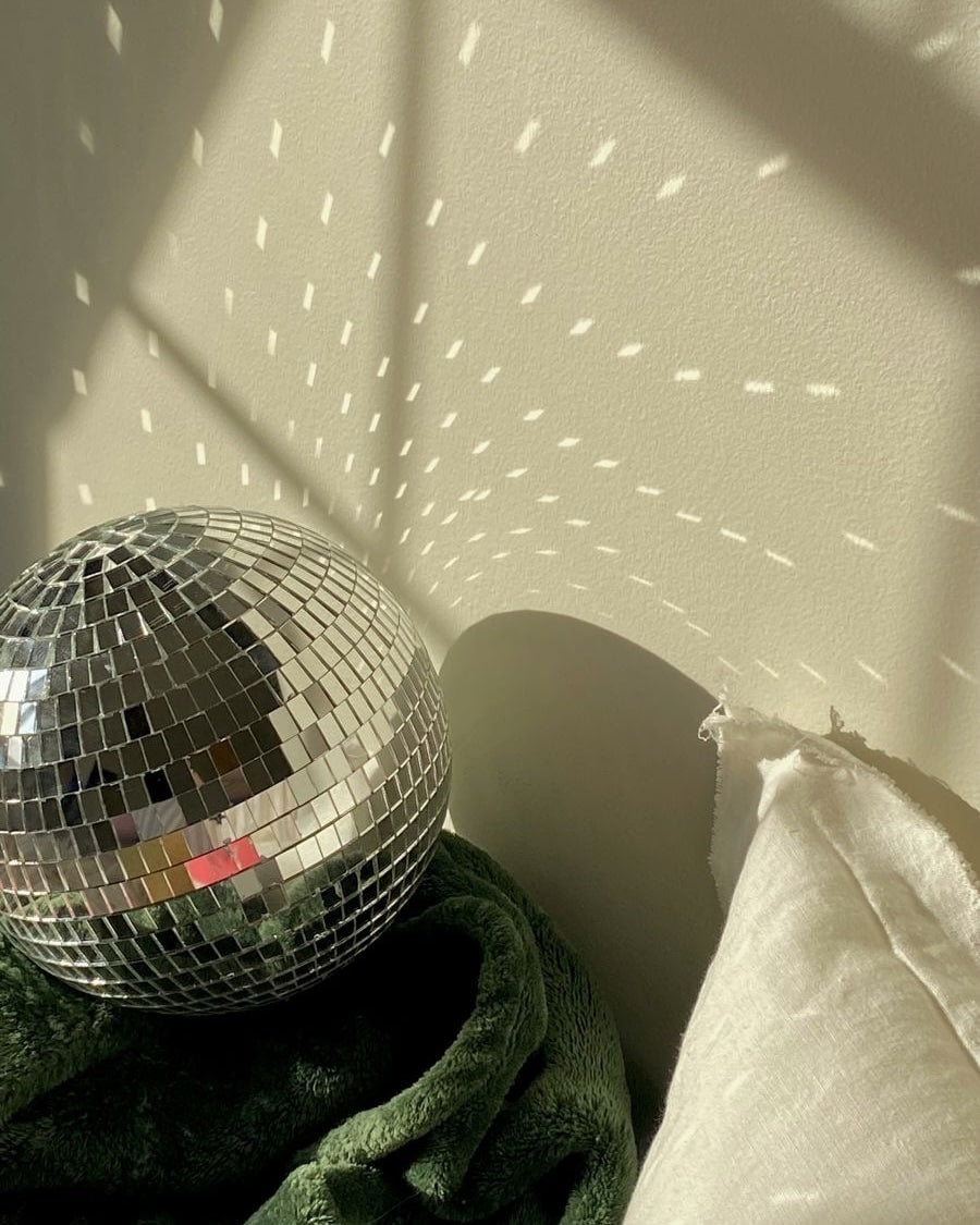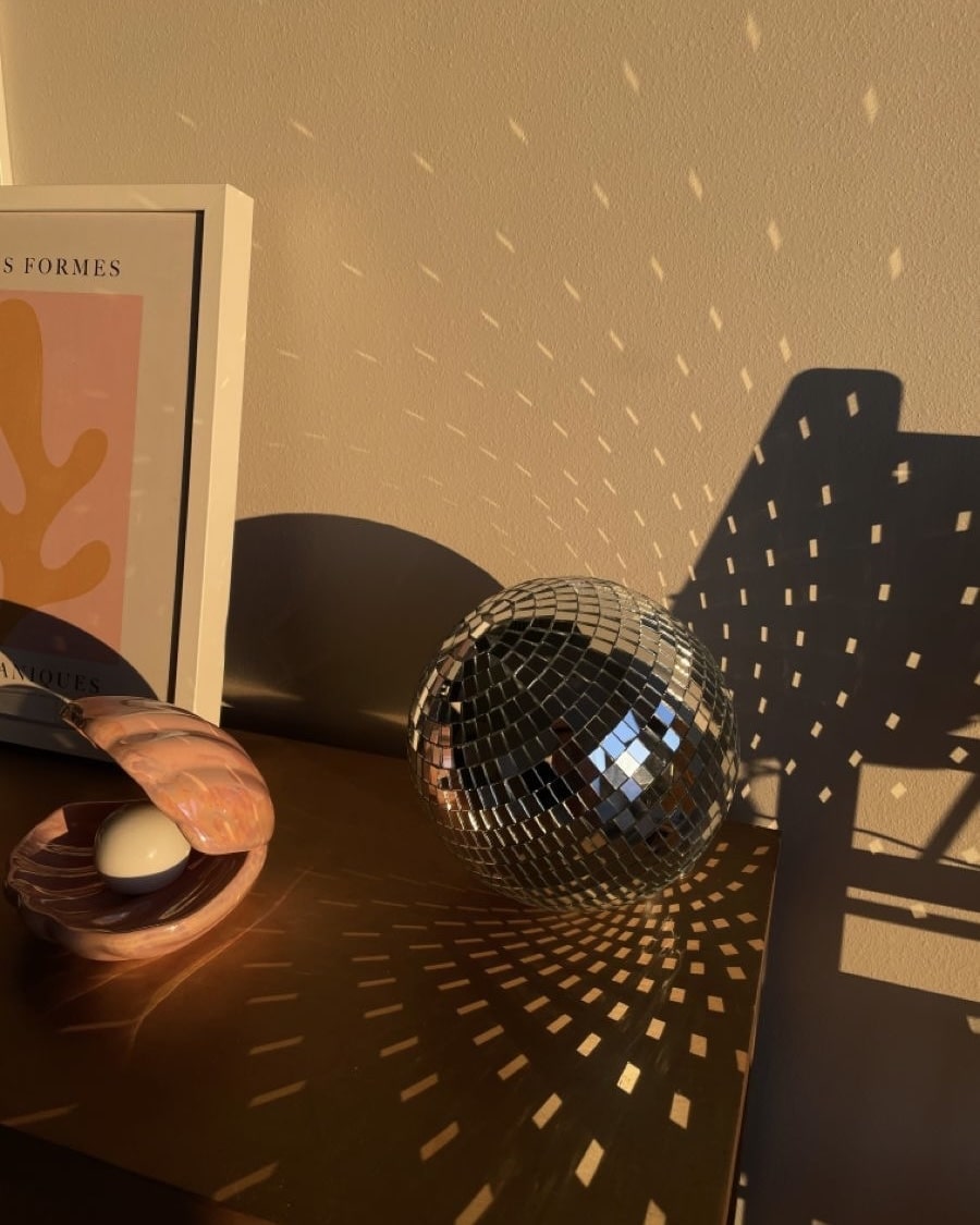 Bring the groovy vibe of the 70s to any space with this Mirror Disco Ball. Perfect for adding a touch of retro charm to parties. weddings. and home decor. this reflective mirror ball enhances any room with shimmering light and ambiance. Ideal for Christmas decorations. themed parties. or as a statement piece in bedrooms. home offices. and cafes. this disco ball captures the essence of vintage decor while creating a fun. dynamic lighting effect.