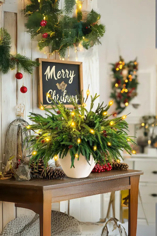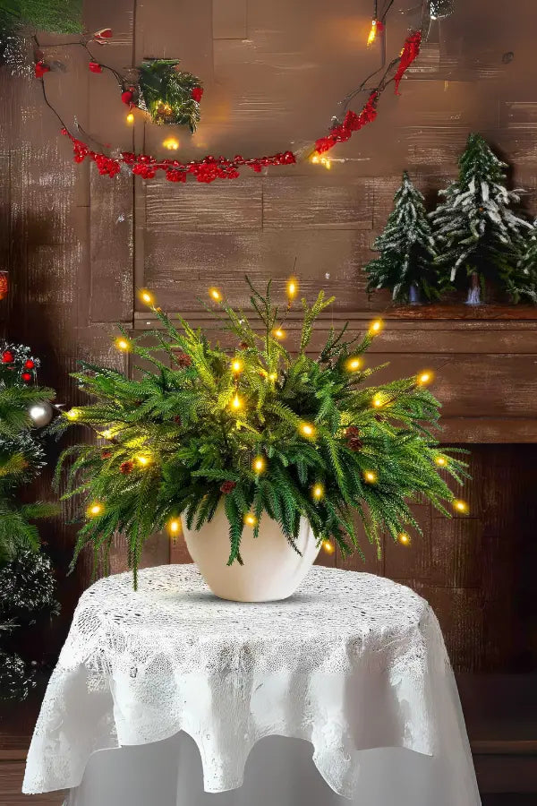 The Mystic Pine Bough brings a touch of magic to your holiday decor with its realistic Norfolk pine branches. Soft. glowing lights along the branches create a warm and festive ambiance in any room.