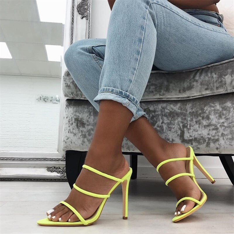 Treat yourself to these sexy sandals. Featuring an open pointed toe. strappy detail. and stiletto heel. Pair with jeans for an everyday look or an evening gown for a special event.