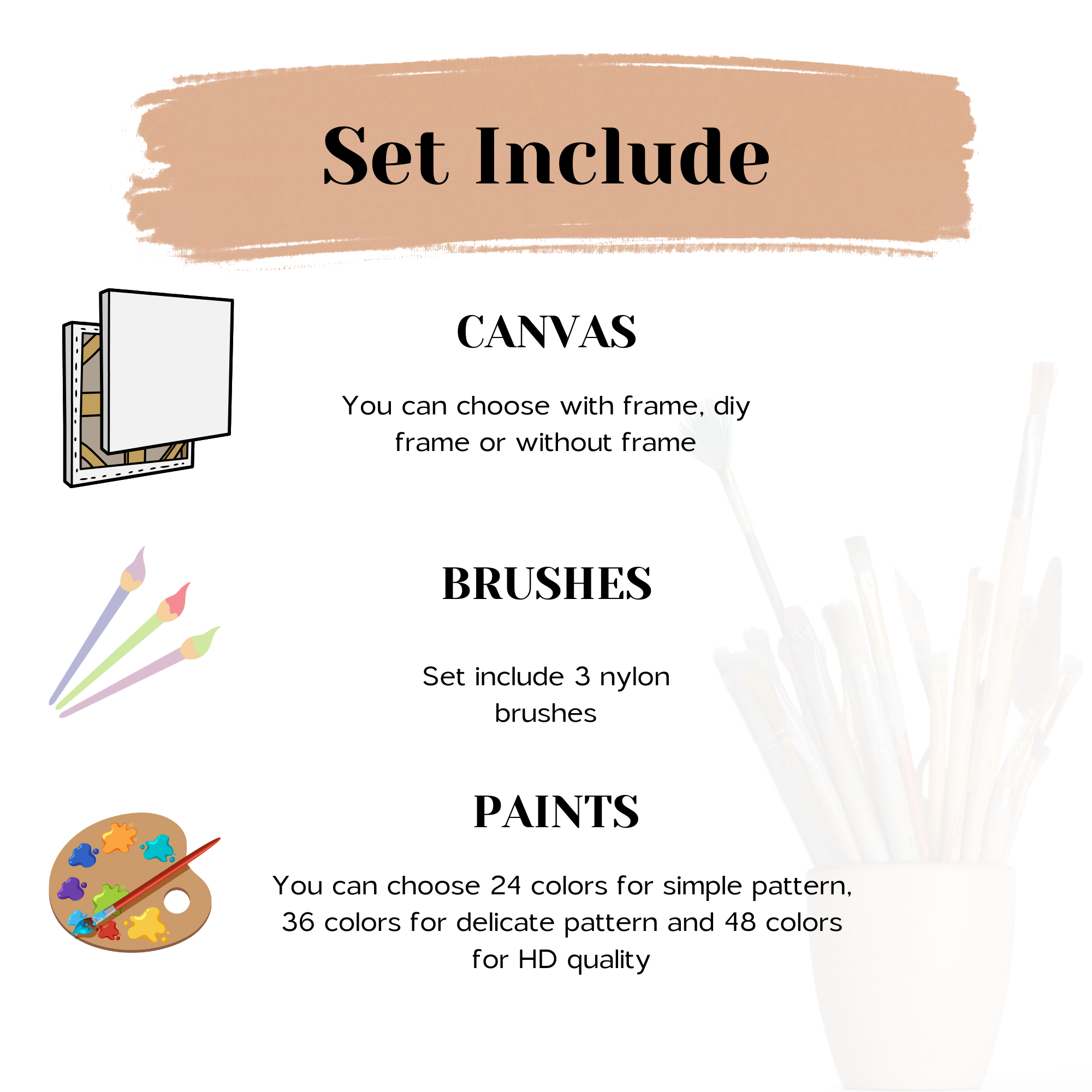 Transform your favorite photos into beautiful artwork with our Personalized Custom Paint by Number Kit. This unique paint by numbers kit allows you to create a customized canvas wall art masterpiece. perfect for home decor or as a thoughtful gift for loved ones. Ideal for beginners and adults alike. this kit includes 24 vibrant colors and a pre-framed canvas. making it easy to get started.