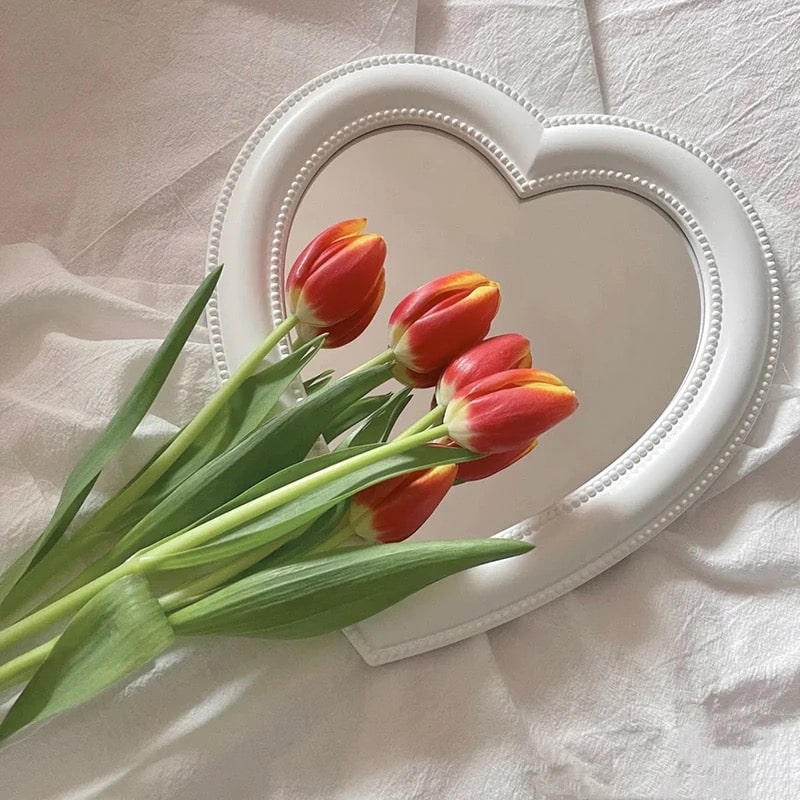 Perfect as a Valentine's Day gift. birthday present. or a thoughtful item for friends and loved ones. Whether for makeup application. room decoration. or dormitory decor. this decorative mirror brings both functionality and style. Ideal for creating a romantic and aesthetic atmosphere in living rooms. bedrooms. or dorms. Upgrade your space with this heart-shaped vanity mirror. the perfect blend of practicality and decoration.