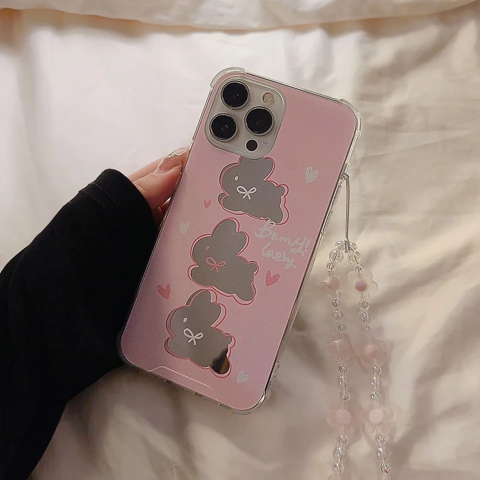 Elevate your phone's style and functionality with this Pink Bunny iPhone Case Mirror Coquette Phone Cover. Designed to fit various iPhone models. including iPhone 16. 15. 14. 13. 12. 11 Pro. XS Max. 8. 7 Plus. X. SE 2020. and XR. this protective phone case offers a chic and durable solution. Crafted with a built-in makeup mirror. this shockproof cover is perfect for quick touch-ups on the go. Its pink bunny and flower design adds a whimsical. coquette-inspired aesthetic. making it ideal for stylish users.