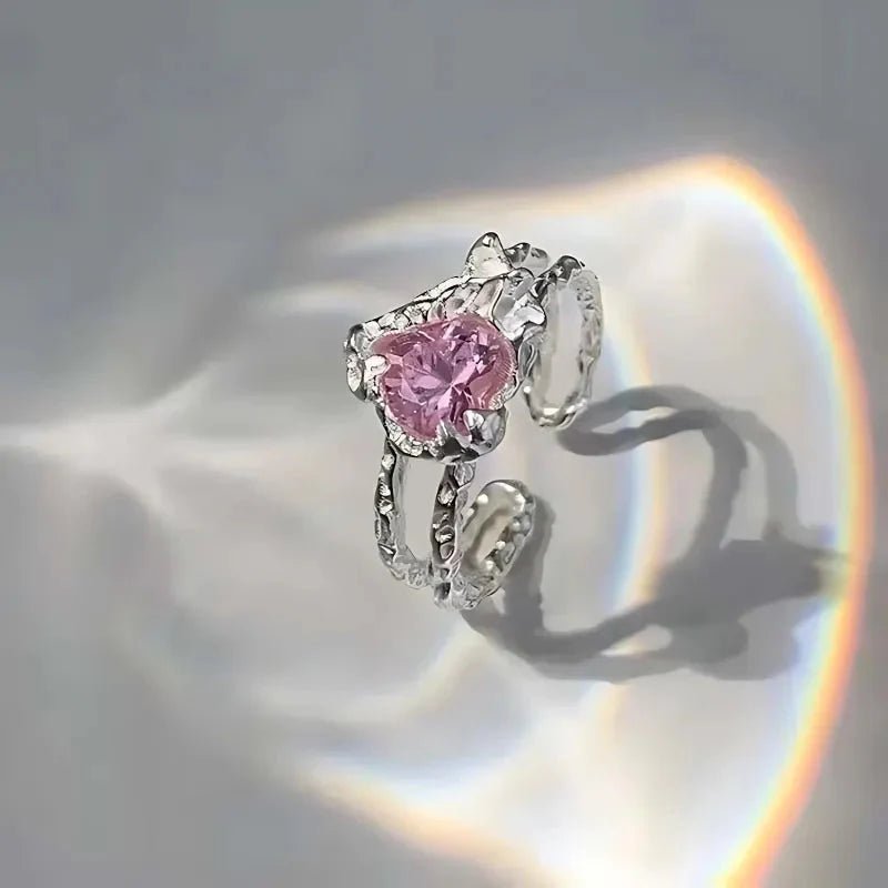 This cuff ring has a captivating pink gemstone at its centre that draws the eye with its enchanting hue