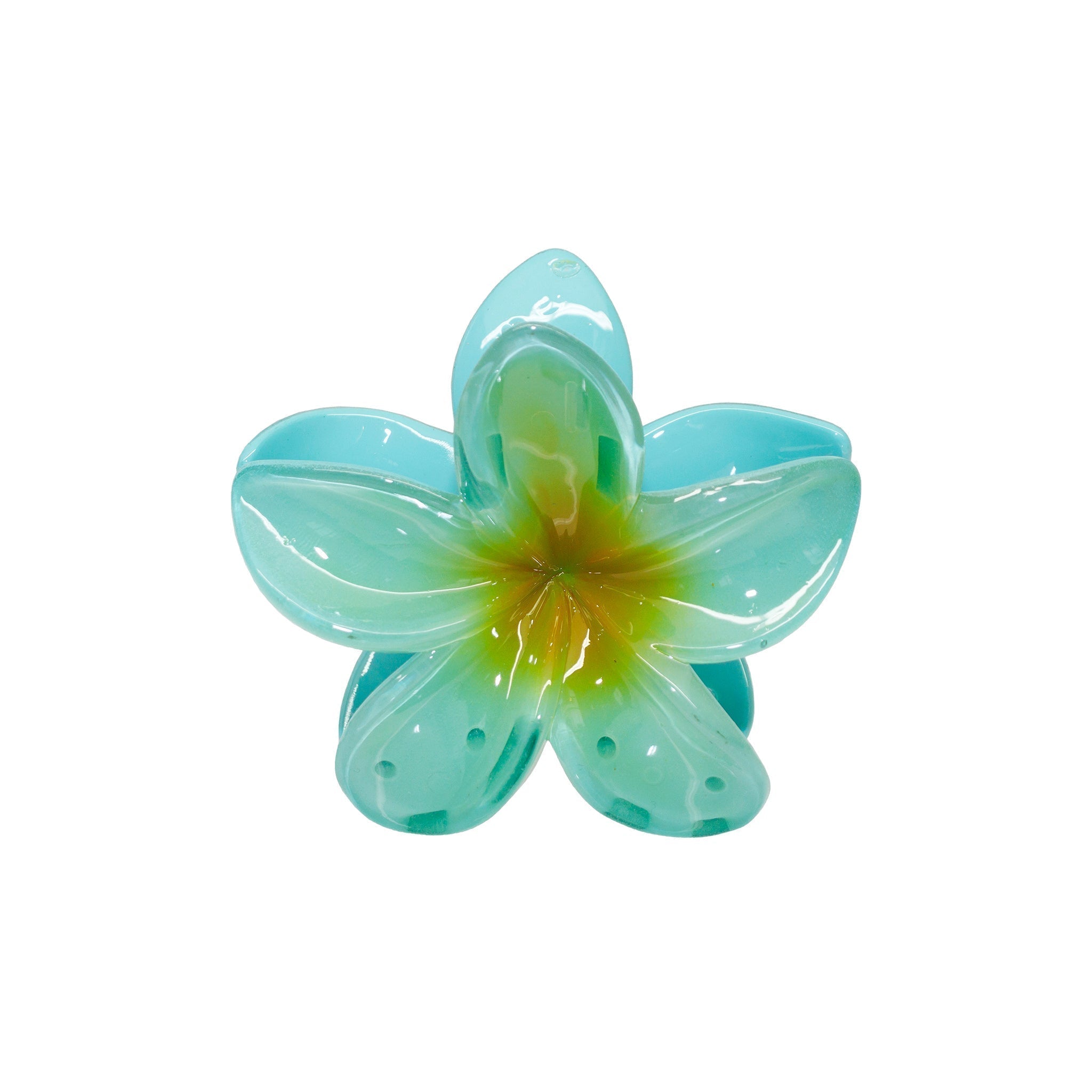 This hair accessory features a playful. frangipani design. Elevate your up-do with this chic frangipani hair claw clip.