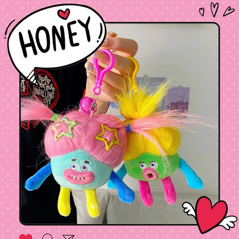 The soft ugly sausage mouth adds a quirky touch. making it a standout accessory. This plush hair doll keychain is not just a toy but also a delightful gift for birthdays. holidays. or any special occasion. Ideal for kids who love to express their creativity. this stuffed funny hair doll encourages imaginative play. It's a perfect companion for children to cuddle and cherish. Get this colorful soft stuffed multicolored plush doll keychain today and make every day brighter!