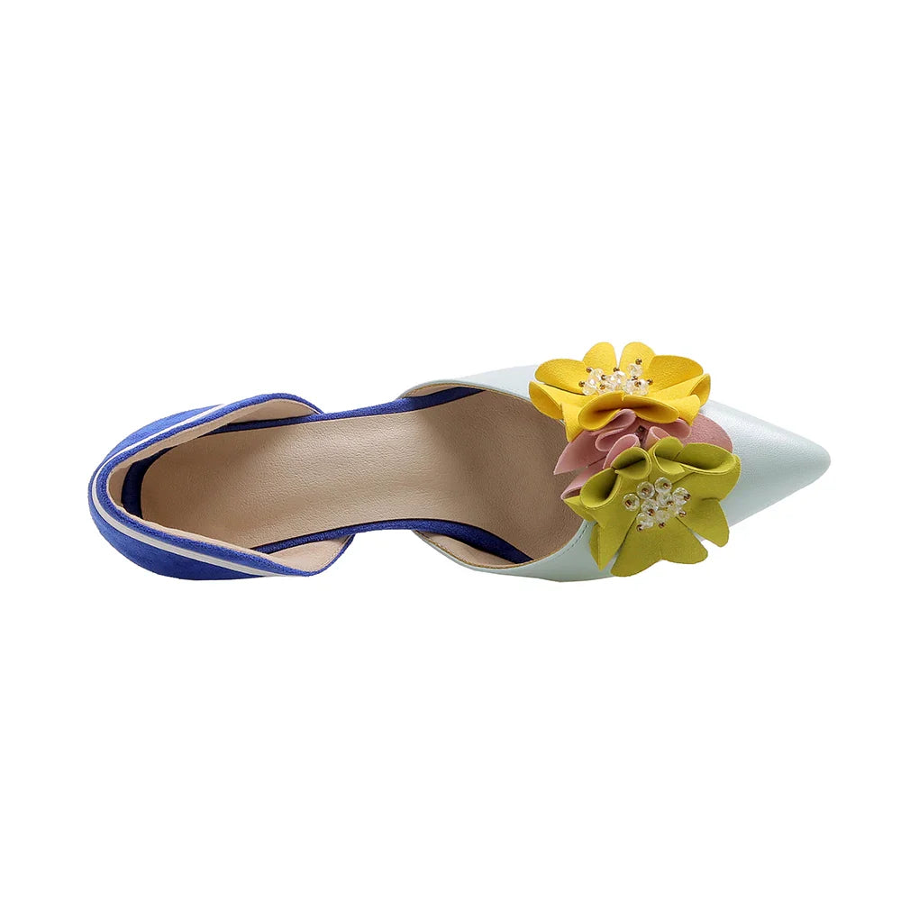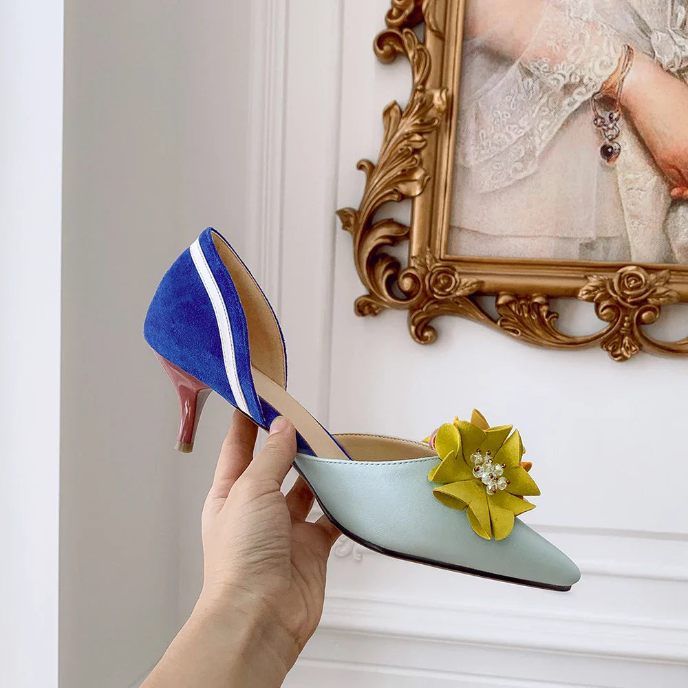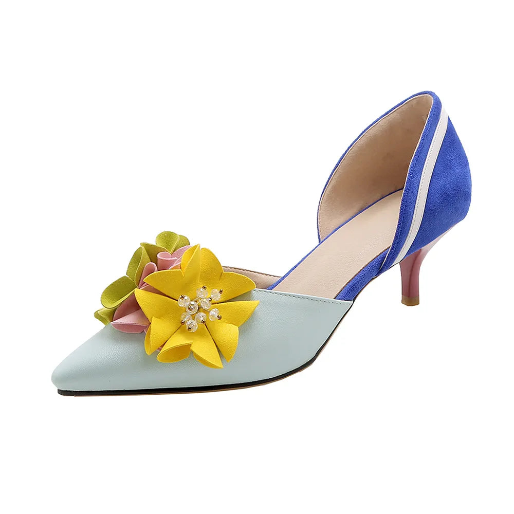 Pointed Toe Flowers Stilettos Lady Mid Heel Shoes