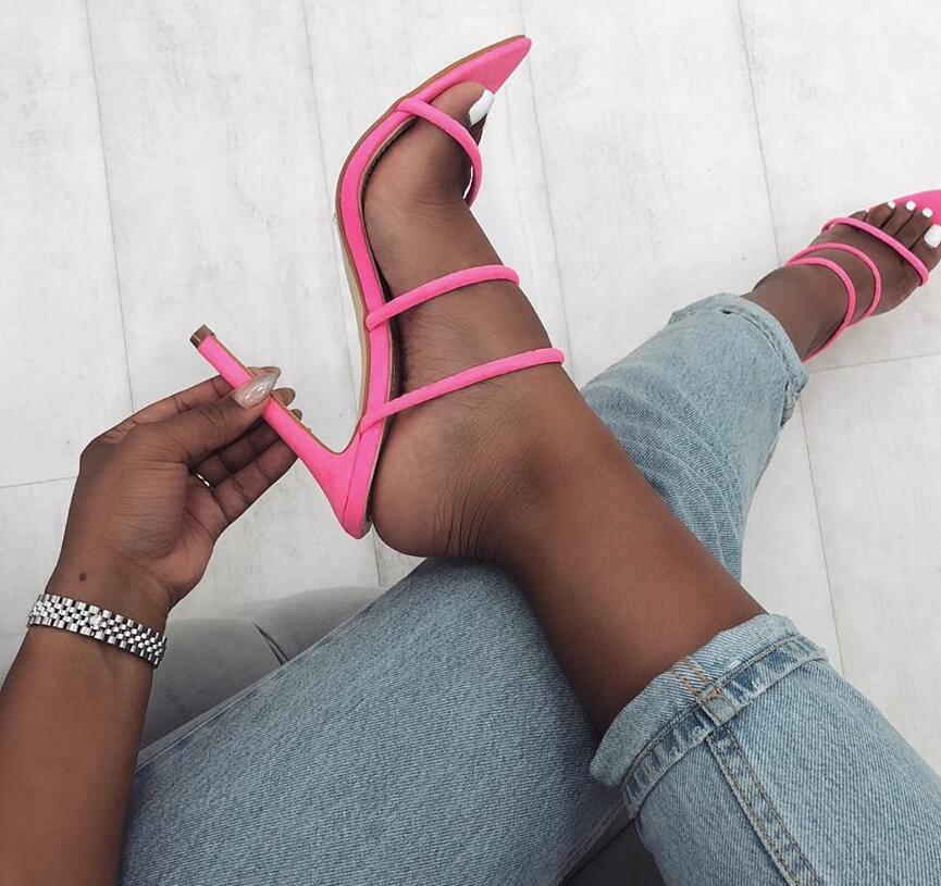 Treat yourself to these sexy sandals. Featuring an open pointed toe. strappy detail. and stiletto heel. Pair with jeans for an everyday look or an evening gown for a special event.