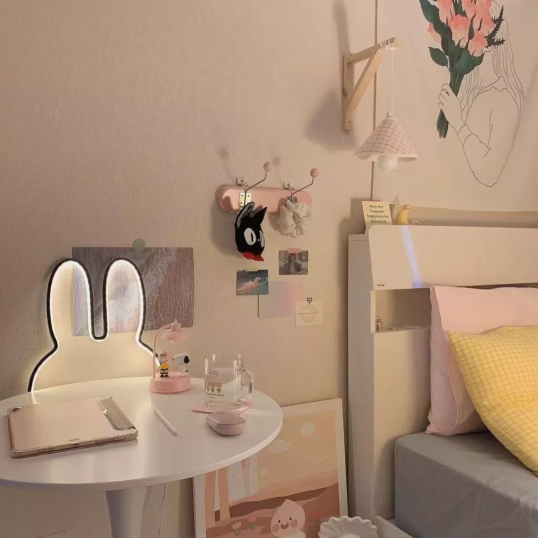 Brighten up your child's room and enhance your home decor with our Rabbit Neon LED Night Light. This adorable cute animal LED night lamp features a charming rabbit design. making it perfect for kids' rooms. bedrooms. and bedside tables. Crafted from high-quality materials. this USB powered LED lamp ensures long-lasting illumination while providing a safe and soothing glow for your little ones. Designed for versatility. this desk lamp doubles as a decorative piece. adding a playful touch to any space.