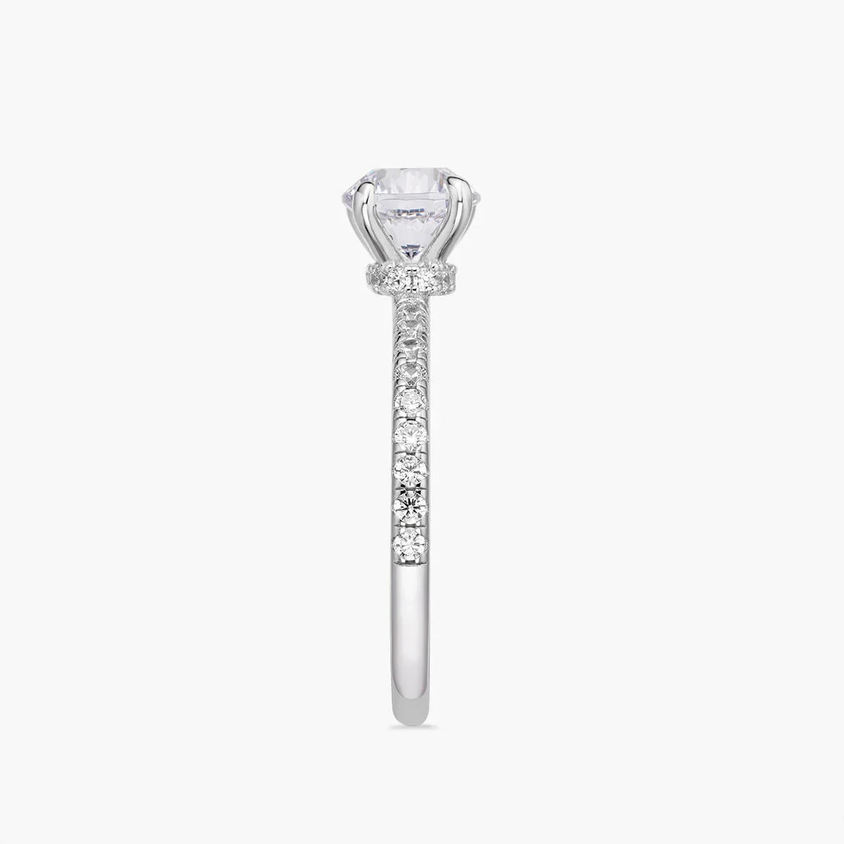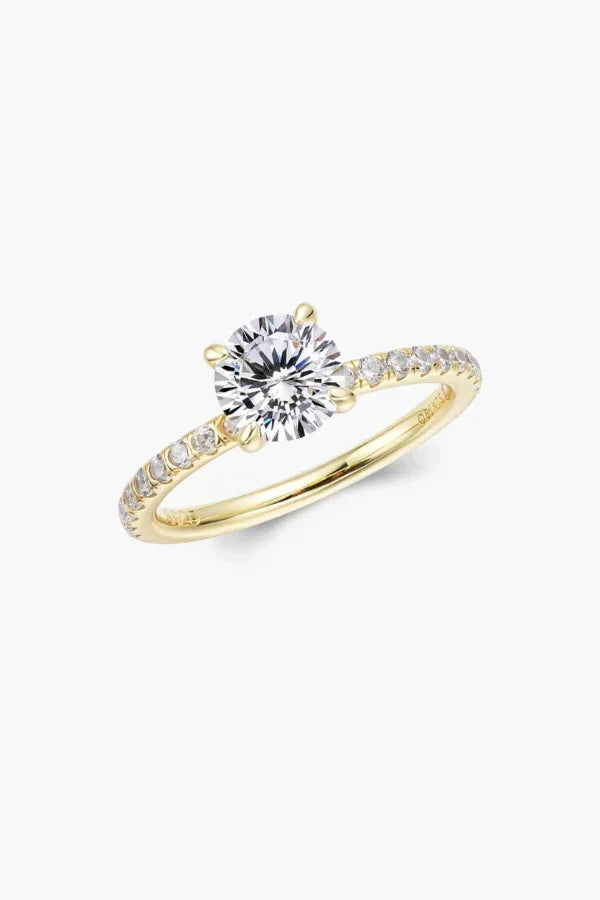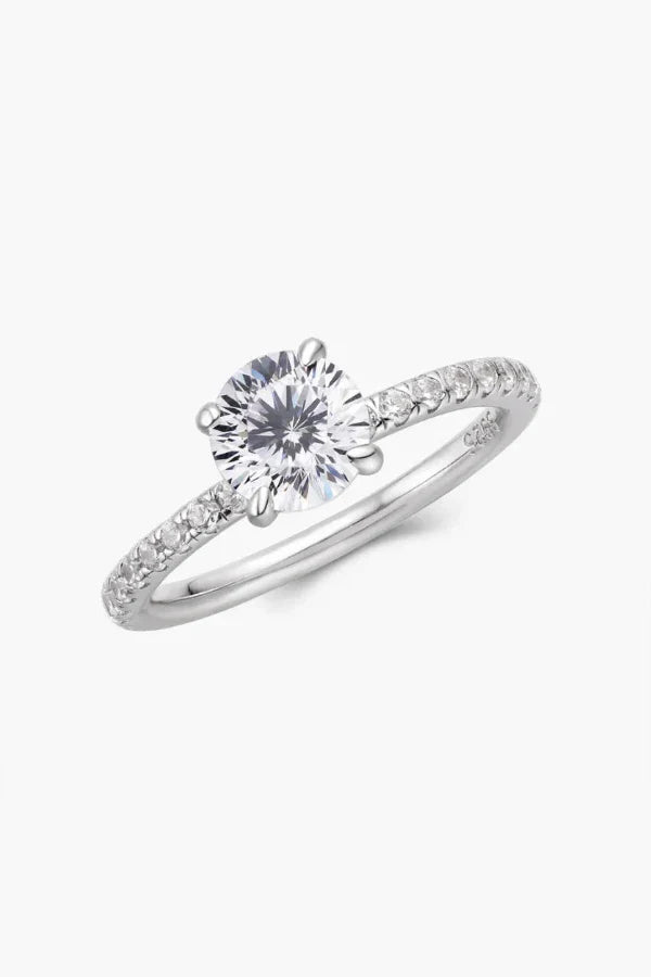 Embrace the enchanting allure of the Celeste Ring. This timeless piece radiates luxury with its pavé band and stunning brilliant round stone. If you seek an effortless accessory that stands the test of time. this ring is your perfect choice.