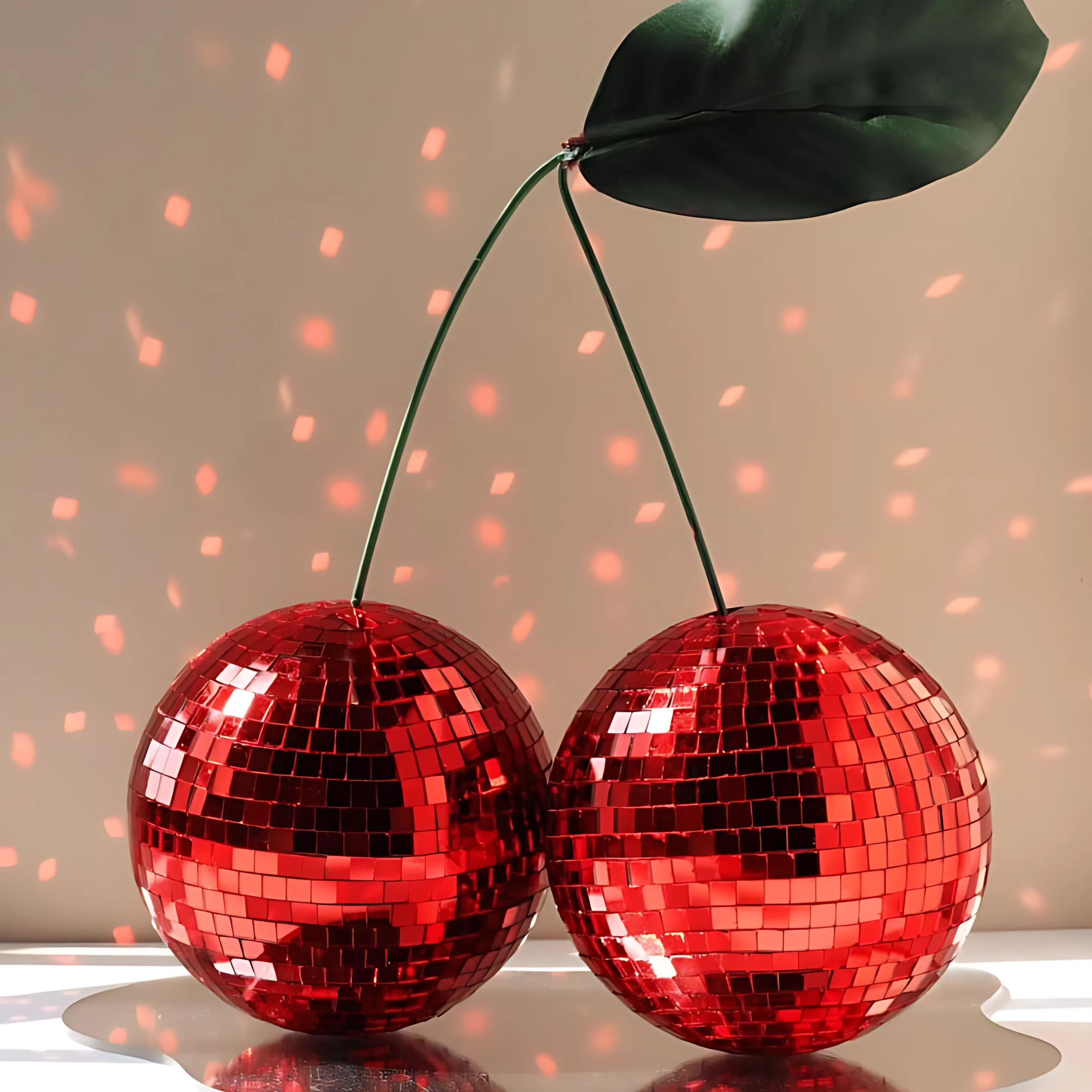 This cherry-shaped disco ball is dopamine decor at its cutest. With mirrored tiles and glossy red shine. it reflects sparkles across your space without needing to hang. Whether you're styling your coquette vanity. decorating for a birthday. or building your dream fruitcore shelf â€?this cherry brings instant main character energy 🍒