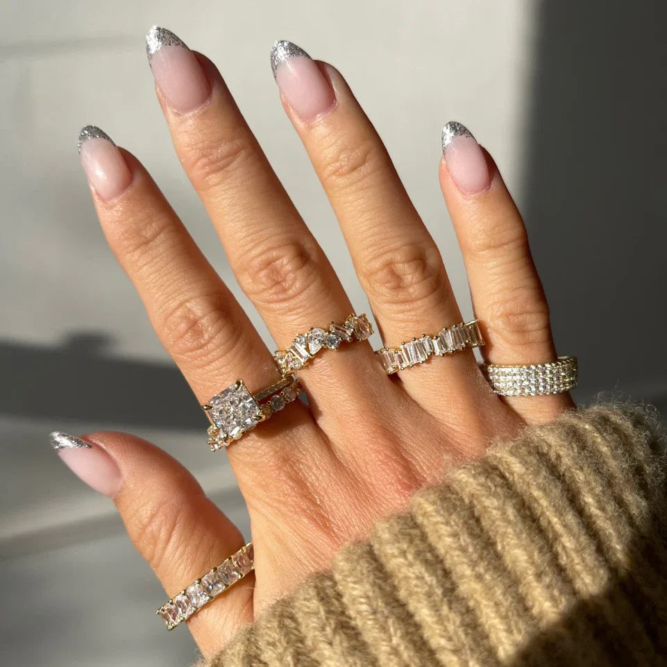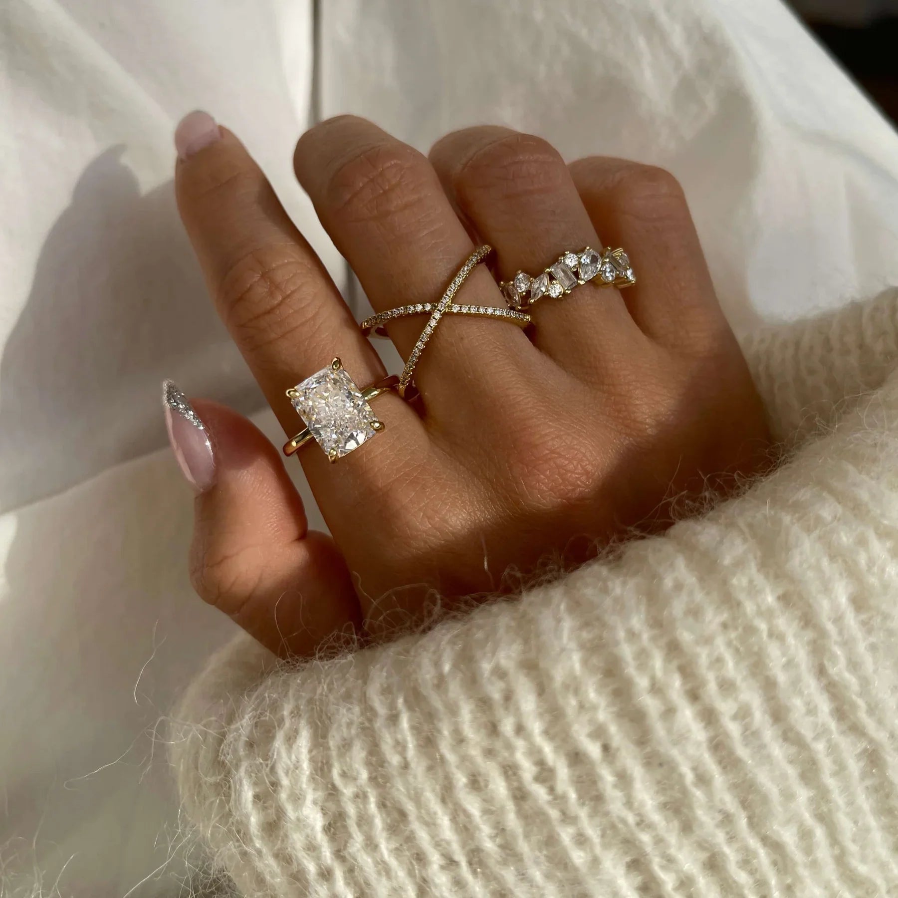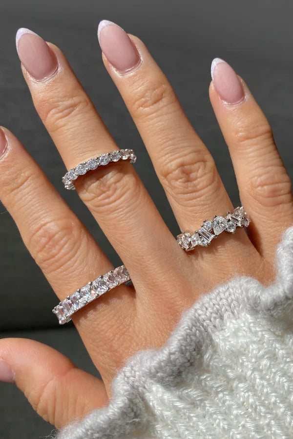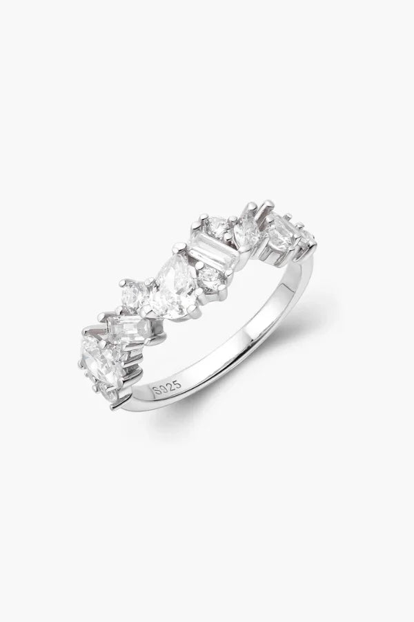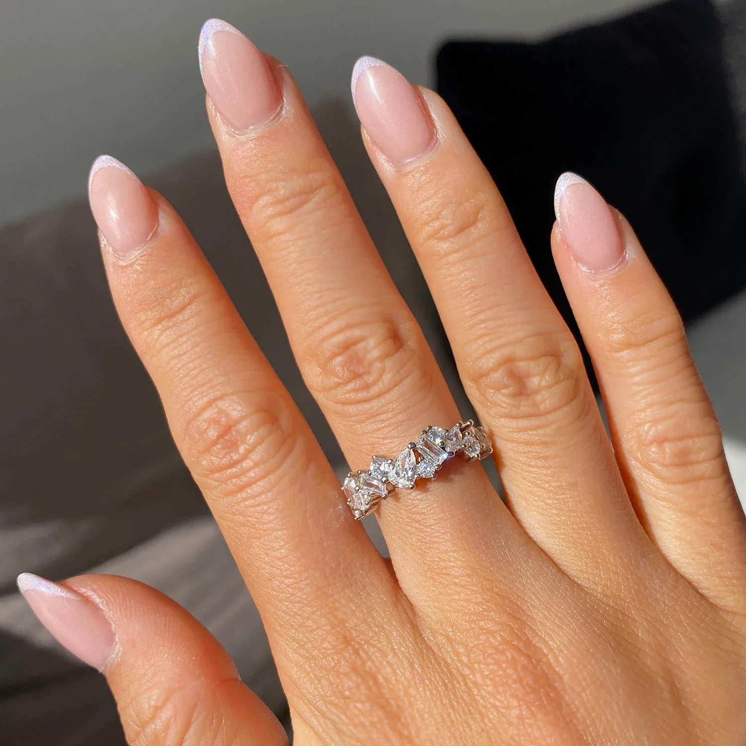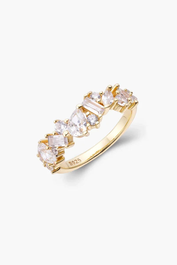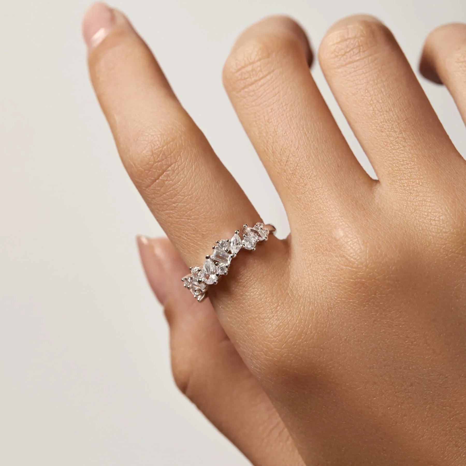 The Rosie Ring celebrates individuality and brilliance with its striking design. featuring a harmonious blend of round. baguette. marquise. and pear-shaped stones that create an elegant tapestry. Each stone is carefully chosen and set. embodying the uniqueness and vibrancy that reflect your style and personality.