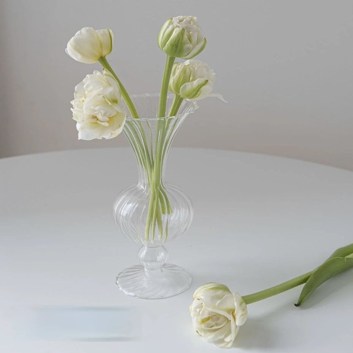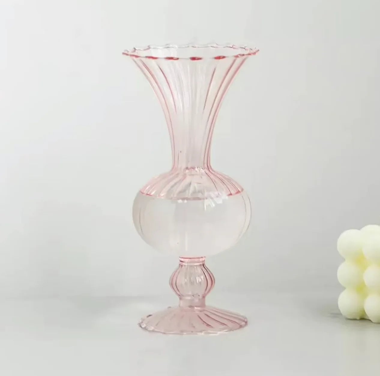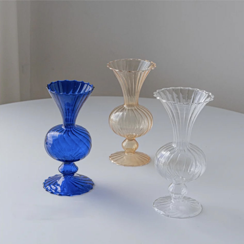 Enhance your home decor with our elegant Rounded Glass Flute Vase. a perfect blend of minimalist Nordic design and vintage charm. This transparent bud vase is meticulously crafted from high-quality glass. making it an ideal flower arrangement holder for your living room. bedroom. or office. Whether you're showcasing fresh blooms or creating a hydroponic plant display. this Nordic glass vase adds a touch of sophistication and simplicity to any space.