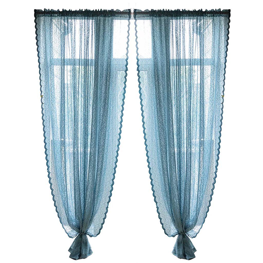 Bring a touch of elegance to your home with this scalloped lace sheer curtain. The lace lets natural light flow in. creating a light and airy feel. It's perfect for adding a demure. graceful touch to your bedroom. living room. or even patio.