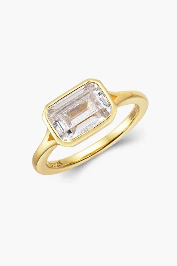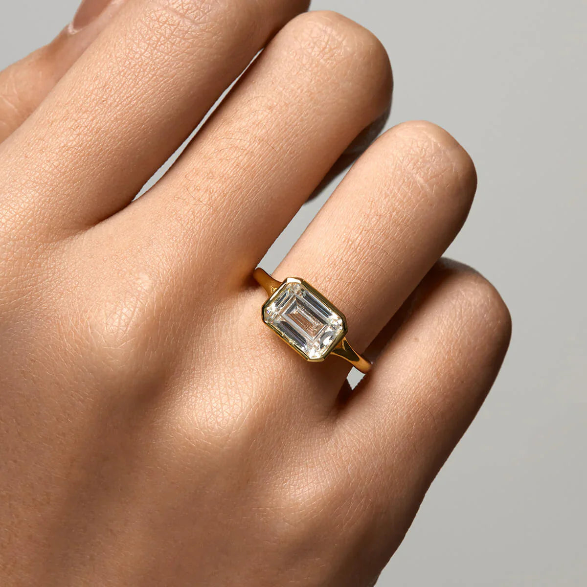 Enhance any outfit with the modern elegance of Selene Ring. Featuring a distinctive split shank design and an east-west emerald bezel. this piece offers a sleek and sophisticated appearance. Make a statement and elevate your style with this eye-catching accessory.