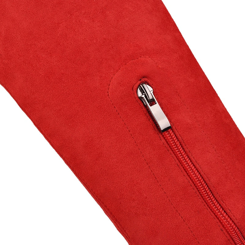 You are bound to turn heads in this sumptuous soft stretch suede over-the-knee boot that will wrap your leg like a glove. This boot will fit most legs as it has a good amount of stretch. This style goes well over skinny jeans or with your favorite skirt.