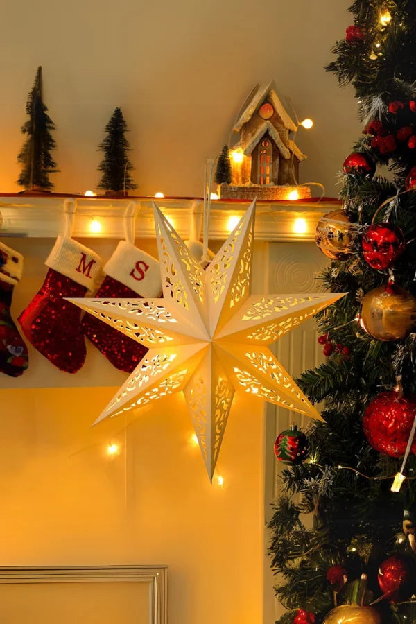Brighten your space with the captivating Shimmering Star of the Night. casting a soft. radiant glow. This stunning lantern adds a touch of celestial elegance to any room.