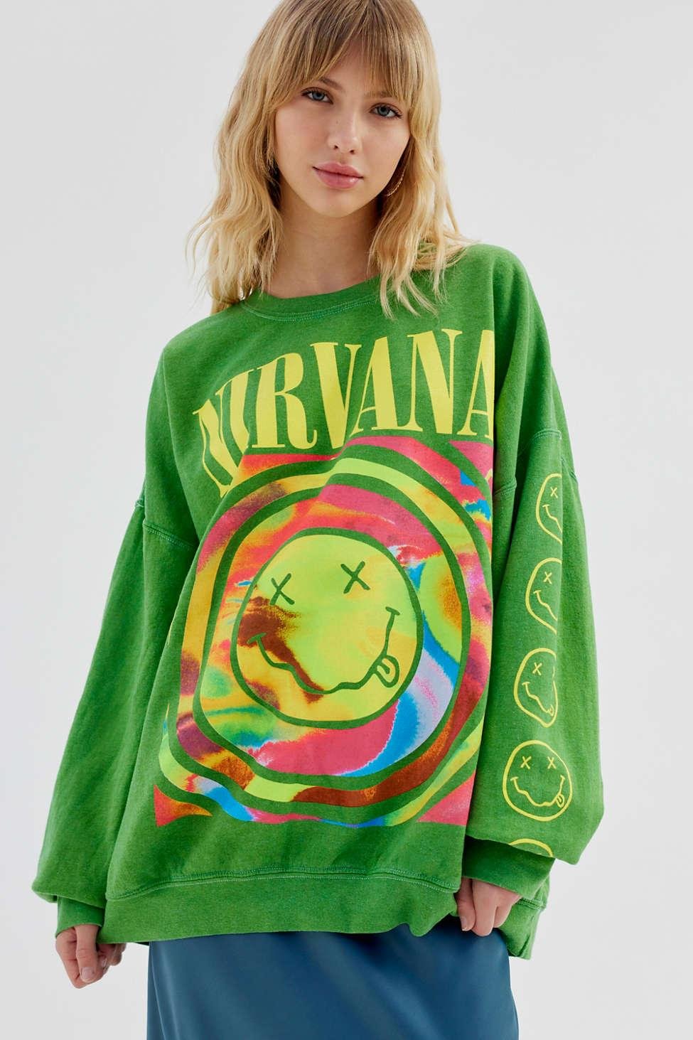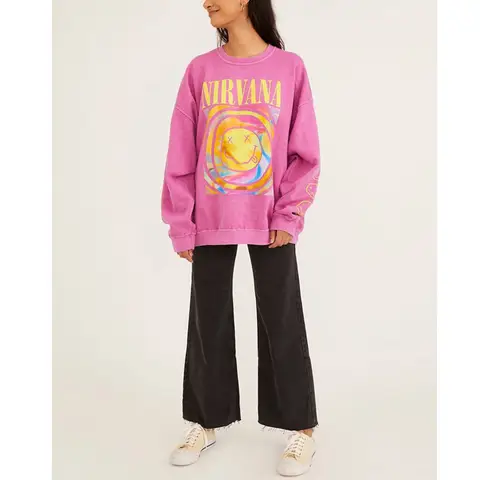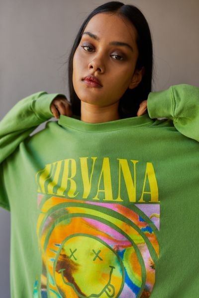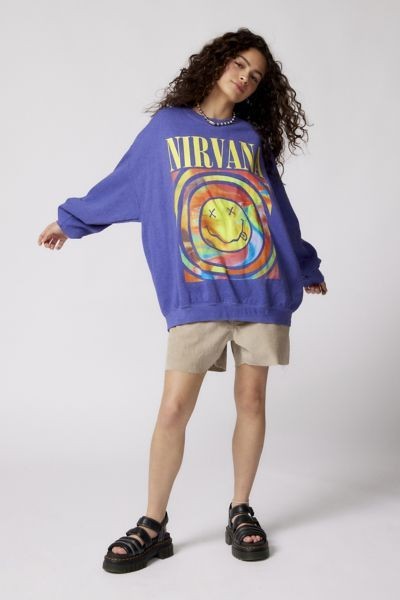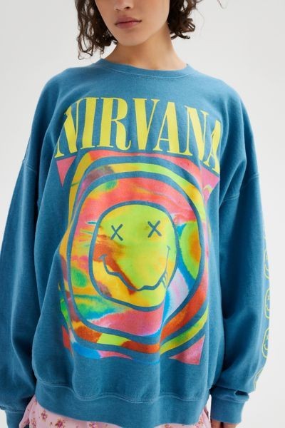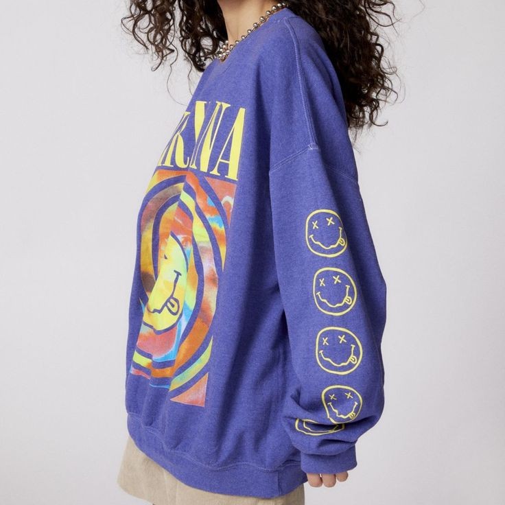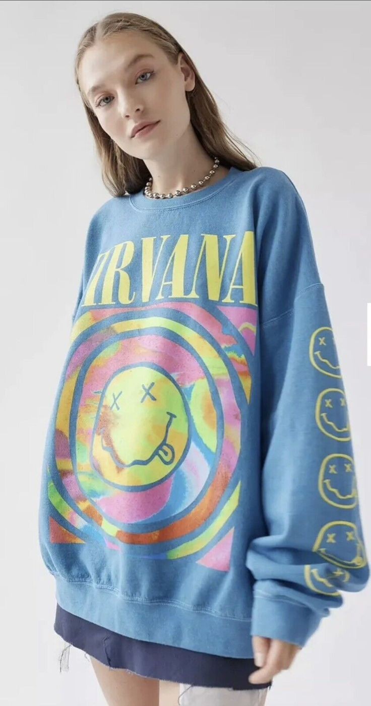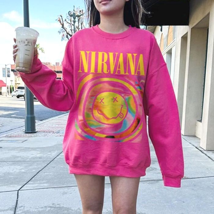 The Nirvana Smiley Face Sweatshirt is tailored for young adults and teens who appreciate both fashion and comfort. It's the perfect addition to your casual wardrobe. effortlessly blending style and versatility. Wear it to school. hangouts with friends. or any casual occasion where you want to make a statement. Pair it with jeans. skirts. or joggers for an effortlessly cool and trendy look. Show off your love for Nirvana and embrace the nostalgia of the 90s with this must-have sweatshirt.