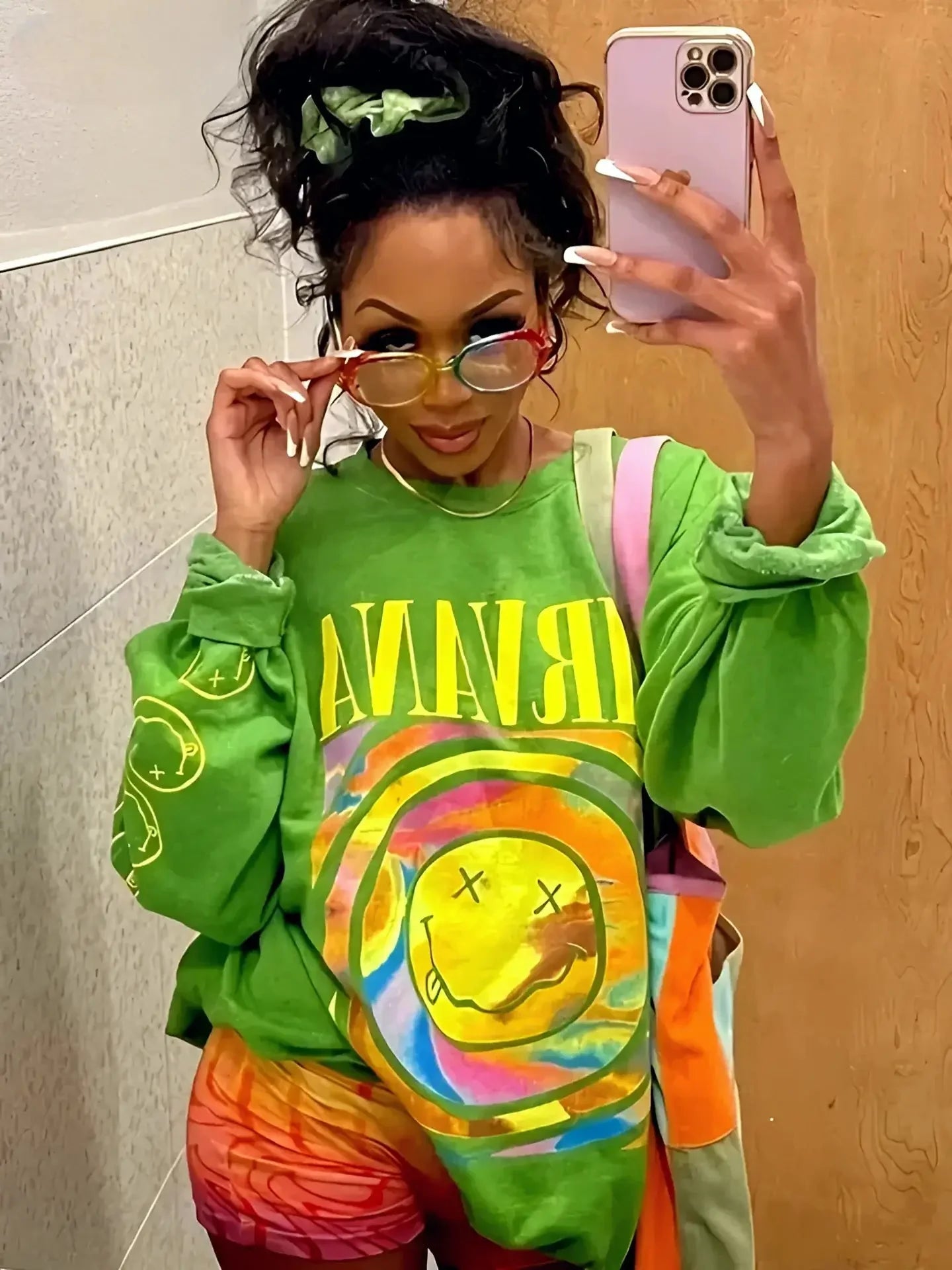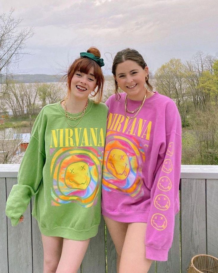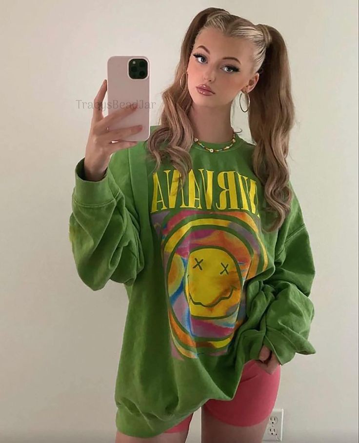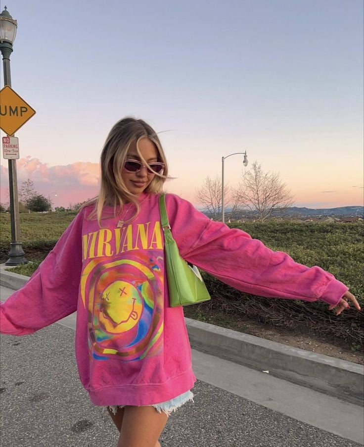 The Nirvana Smiley Face Sweatshirt is tailored for young adults and teens who appreciate both fashion and comfort. It's the perfect addition to your casual wardrobe. effortlessly blending style and versatility. Wear it to school. hangouts with friends. or any casual occasion where you want to make a statement. Pair it with jeans. skirts. or joggers for an effortlessly cool and trendy look. Show off your love for Nirvana and embrace the nostalgia of the 90s with this must-have sweatshirt.