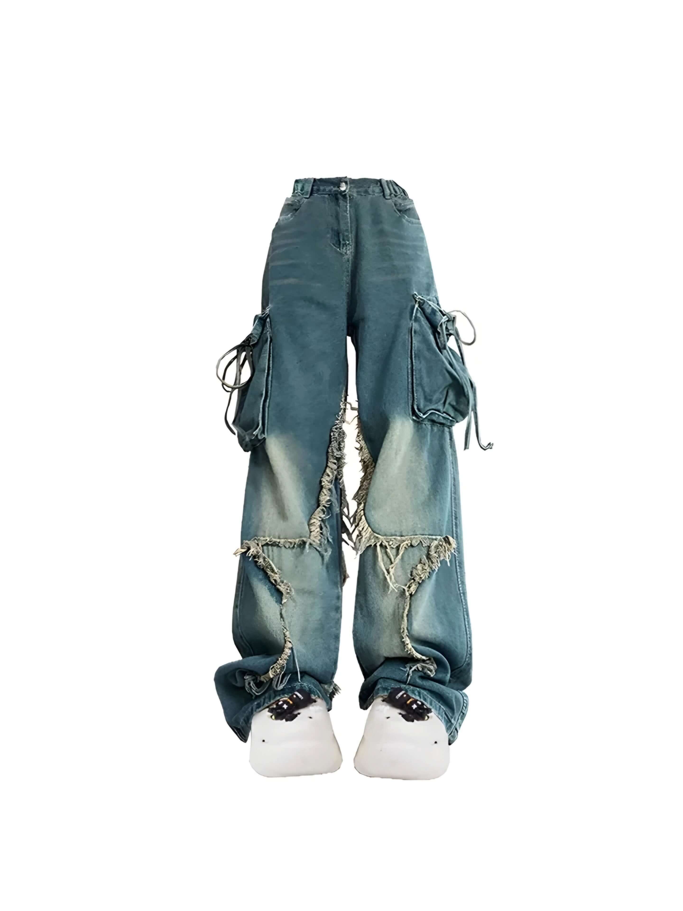 These Pants feature a large raw edge design that connects both legs to form a full star.