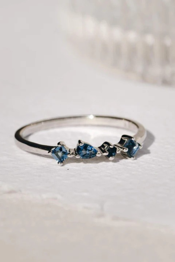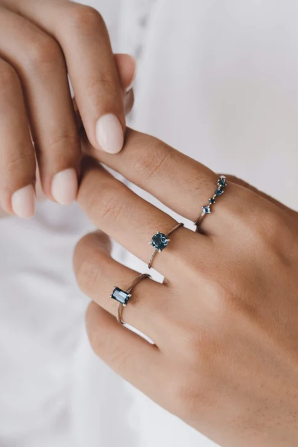 Introducing our exquisite London Topaz Ring. a dazzling piece that radiates elegance and sophistication. Featuring a stunning London Blue Topaz at its center. this ring showcases a rich. deep blue hue that captures the essence of twilight skies. Set in your choice of high-quality sterling silver or luxurious white gold. the stone is beautifully complemented by intricate detailing and shimmering accents. enhancing its allure.