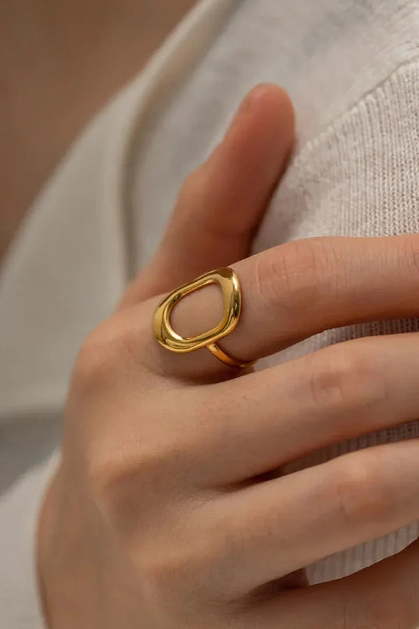 The VistaRing showcases a sleek. minimalist design with a unique window-like cutout. crafted from 100% titanium steel. Its modern. sophisticated style offers both durability and elegance. making it an ideal accessory for any occasion. This versatile ring effortlessly complements any look. adding a refined touch to your jewelry collection.