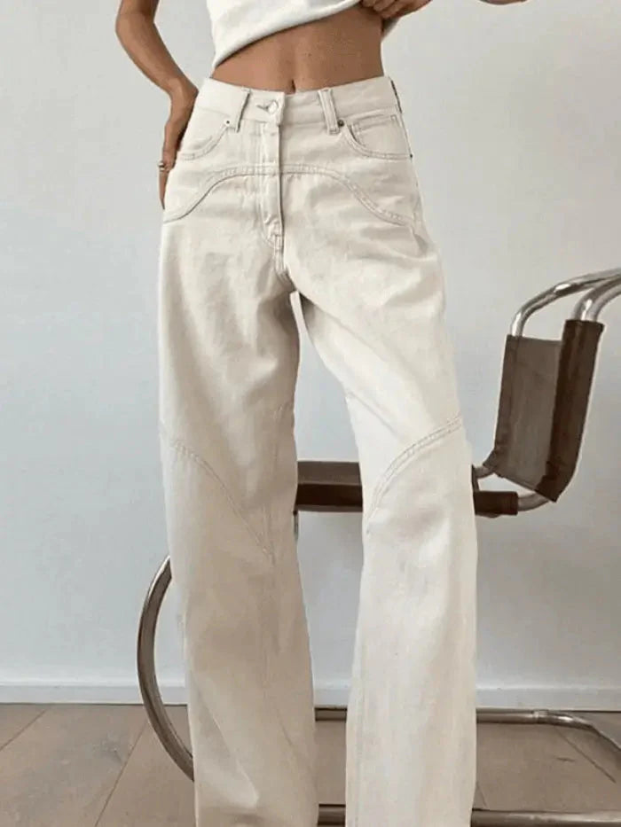 The White Splice Straight Leg Cargo Jeans has a comfortable cotton blend fabric ensures a regular fit.
