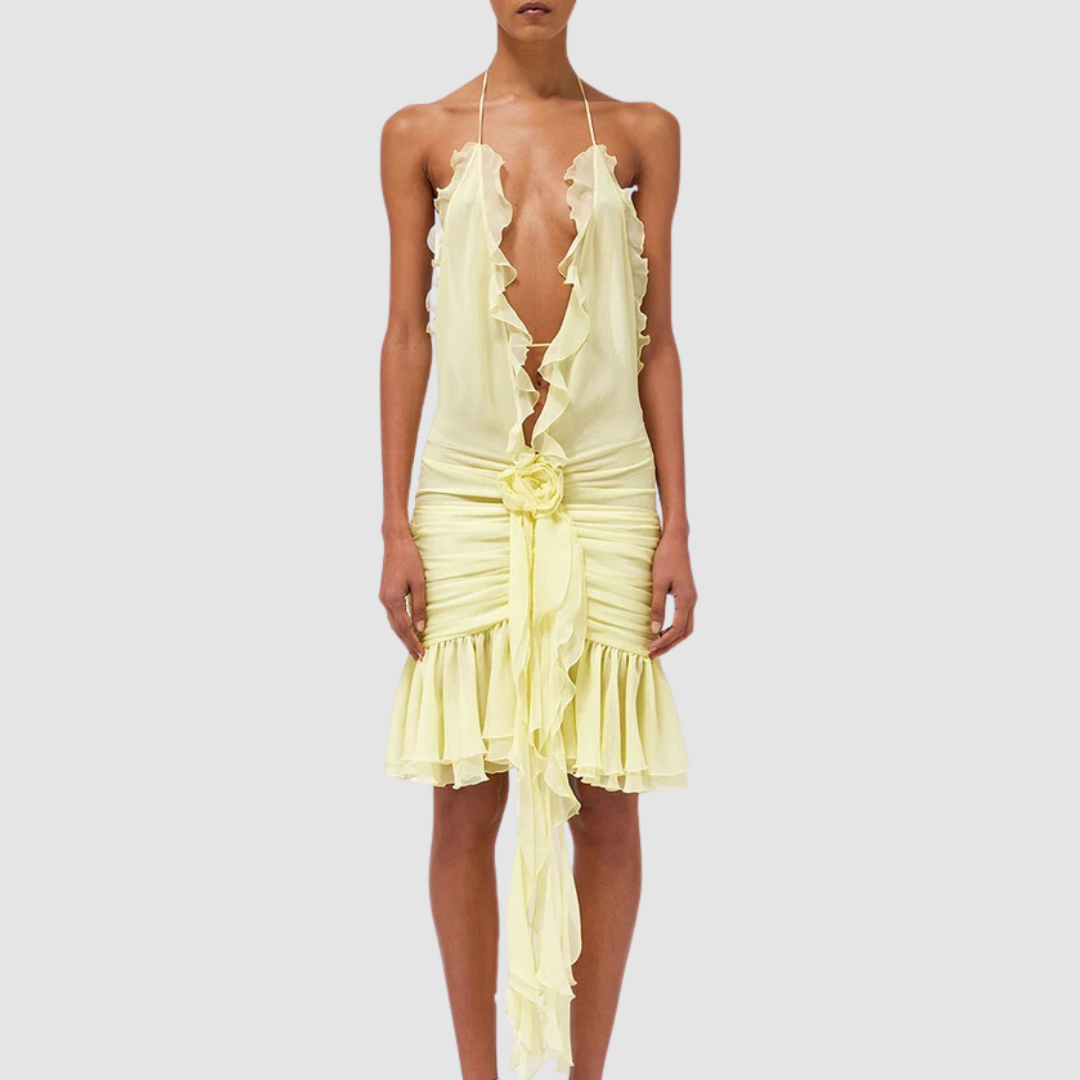 Yellow Daring Ruffles Mini Dress
